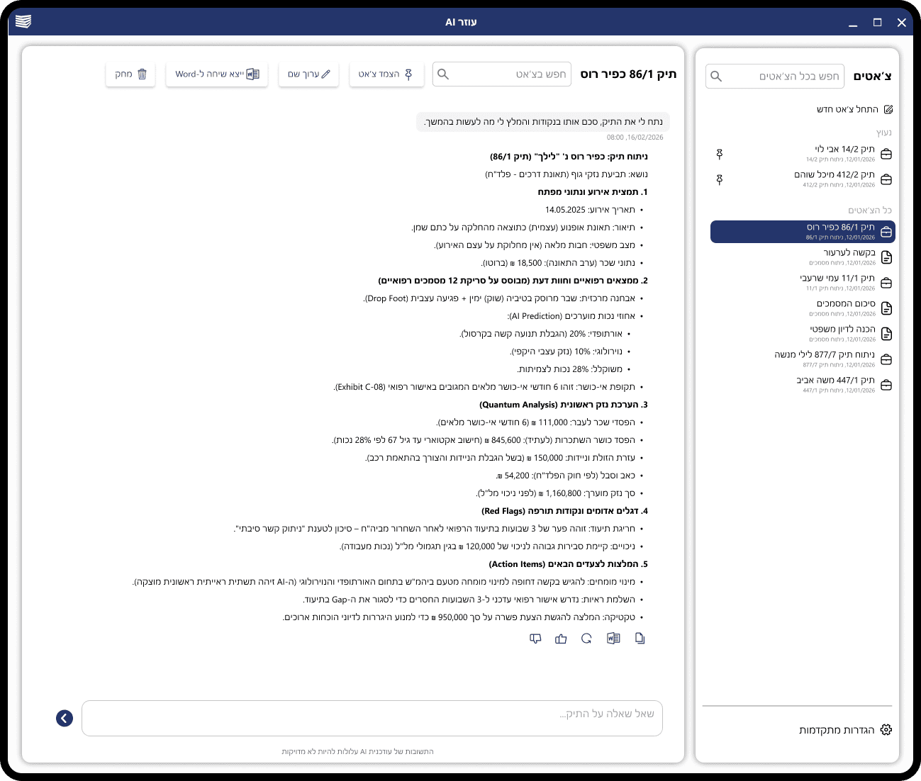 The interface enables a holistic conversation with the entire case file.